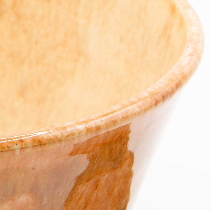 Finished all over with a combination of glazes giving a mottled cream, light-brown and dark-brown finish.