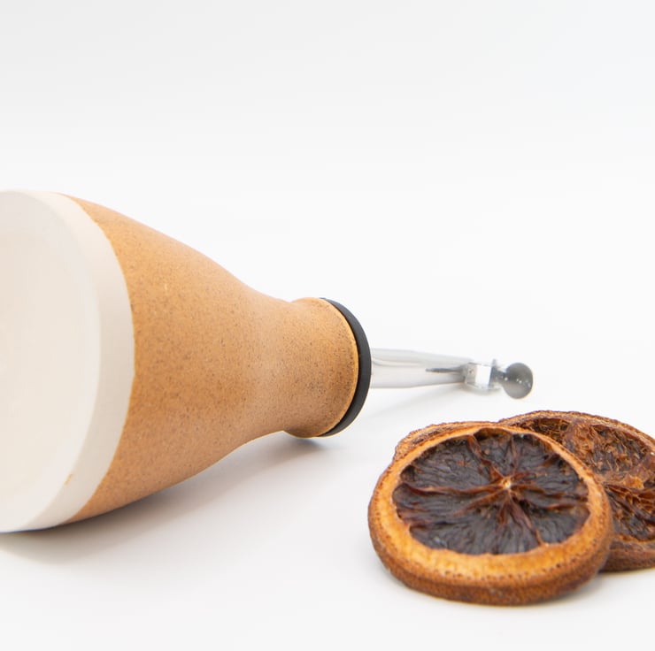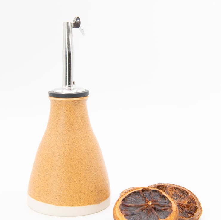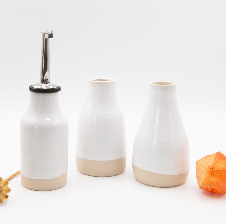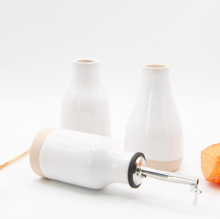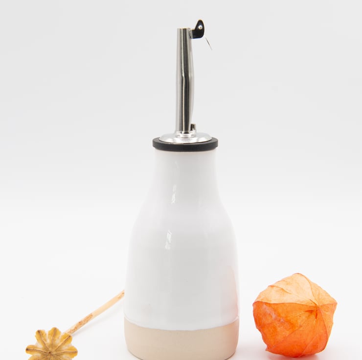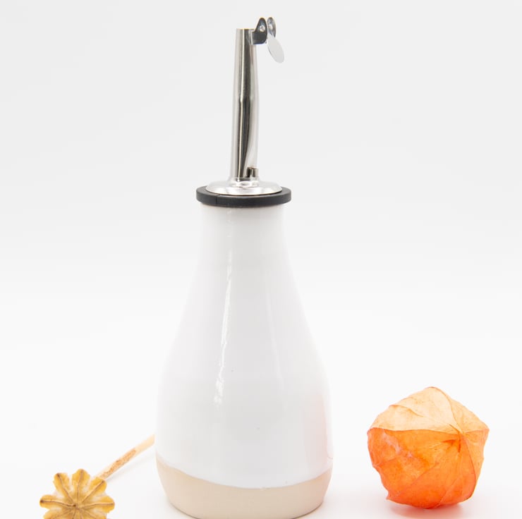 Finished in either gloss white or oatmeal.Supplied with spout. Use for table serving oils or vinegars.