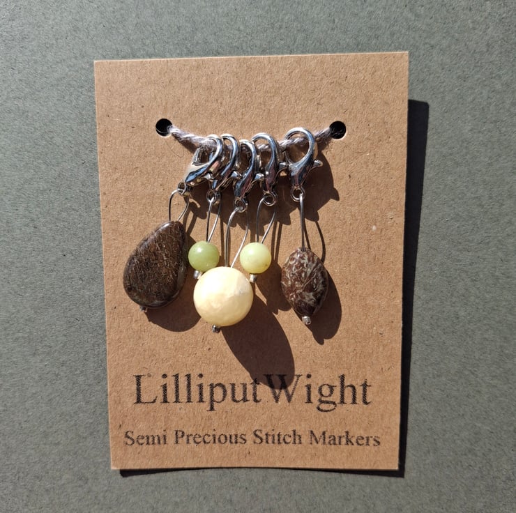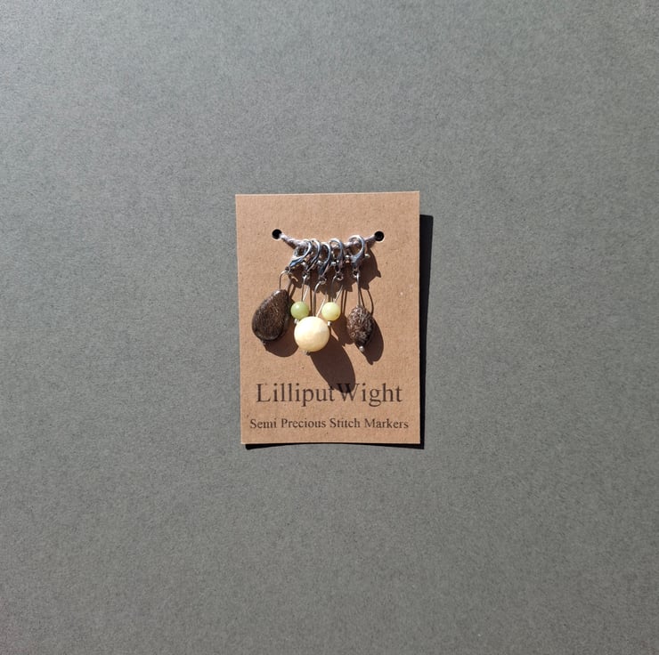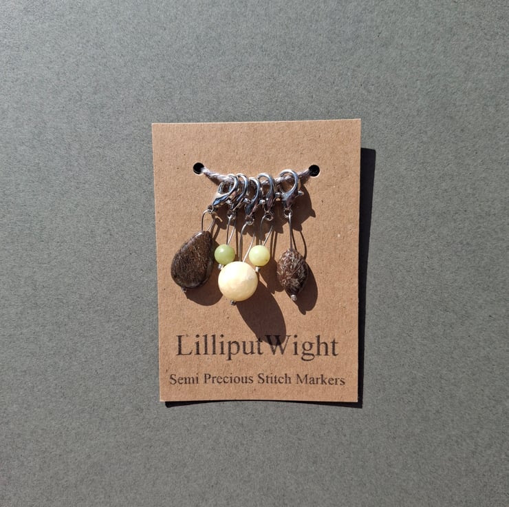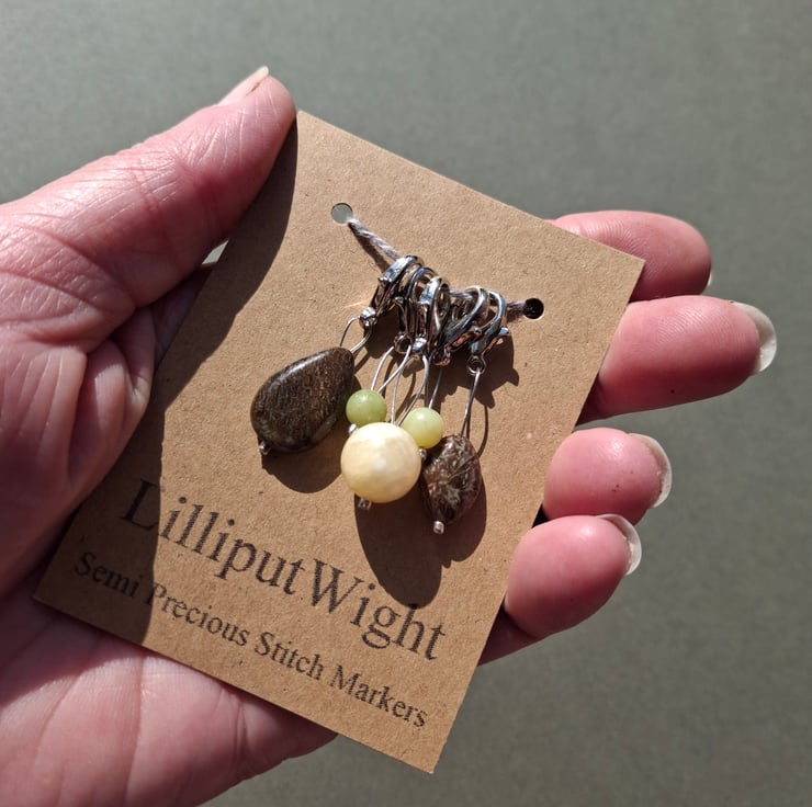 Made from a selection of beads being destashed by the talented earth-balace-craft.co.uk these special edition stitch markers are made using semi precious gemstone beads in a range of earth and nature colours. Some of the broken jewellery beads have also been used in this range.