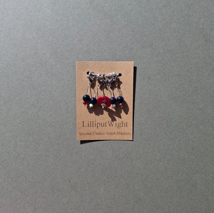 Inspired by a broken earring this range of stitch markers is made from the broken and unloved jewellery found in charity shops. They are broken apart, cleaned and dried before being turned into stitch markers and given a second chance of life.