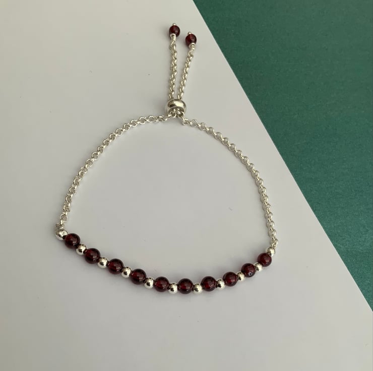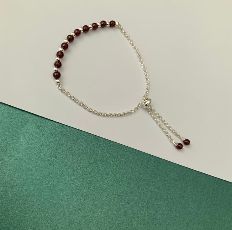 Sterling Silver and Garnet Bead Slider Bracelet – Handmade Adjustable Gift of St