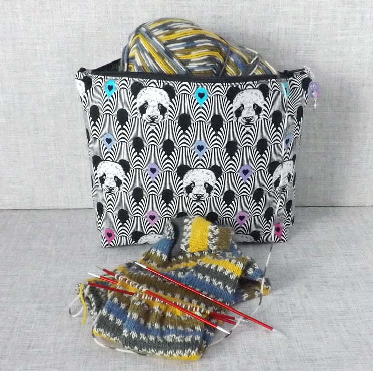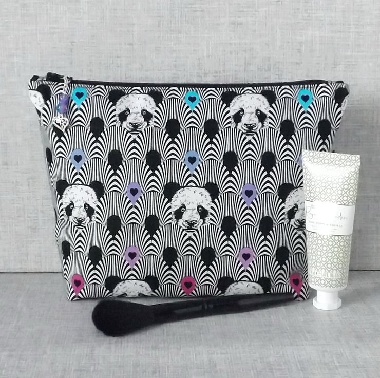 Large zipped pouch, project bag, cosmetic bag, pandas