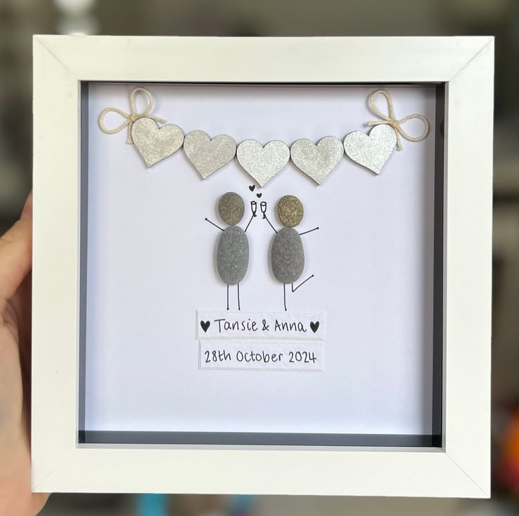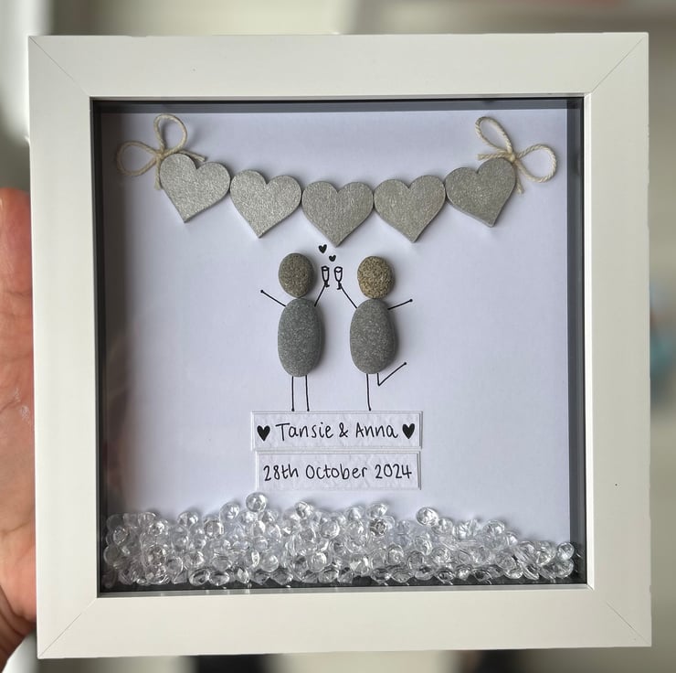 Personalised Wedding Gift, Gift for Couples, Wedding Frame, Pebble art gift