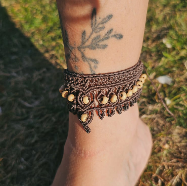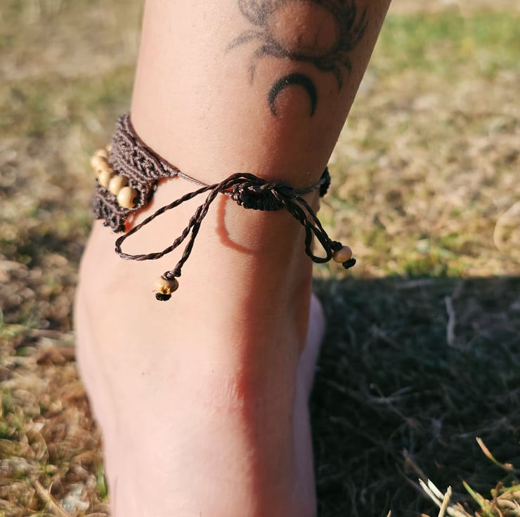 Handcrafted with love, this bohemian-style bracelet and anklet set is made from earthy brown macrame cord and adorned with natural wooden beads. The design reflects a rustic, ethnic charm — perfect for free spirits and nature lovers.