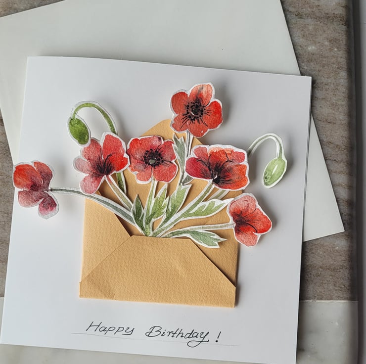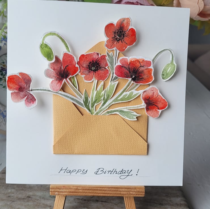 Original watercolor greeting card, summer fowers, special occasion, 2D effect