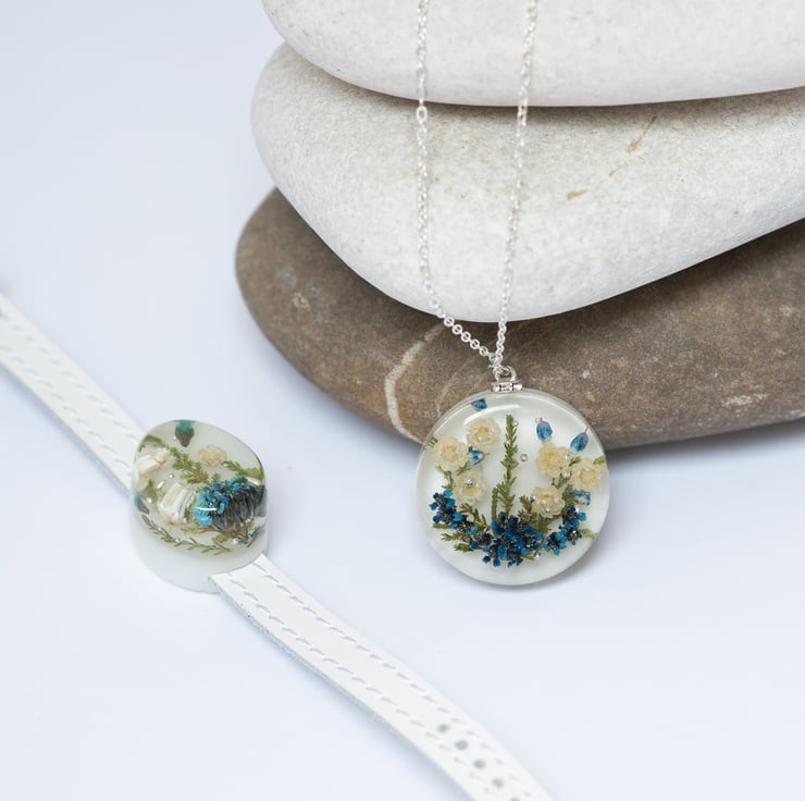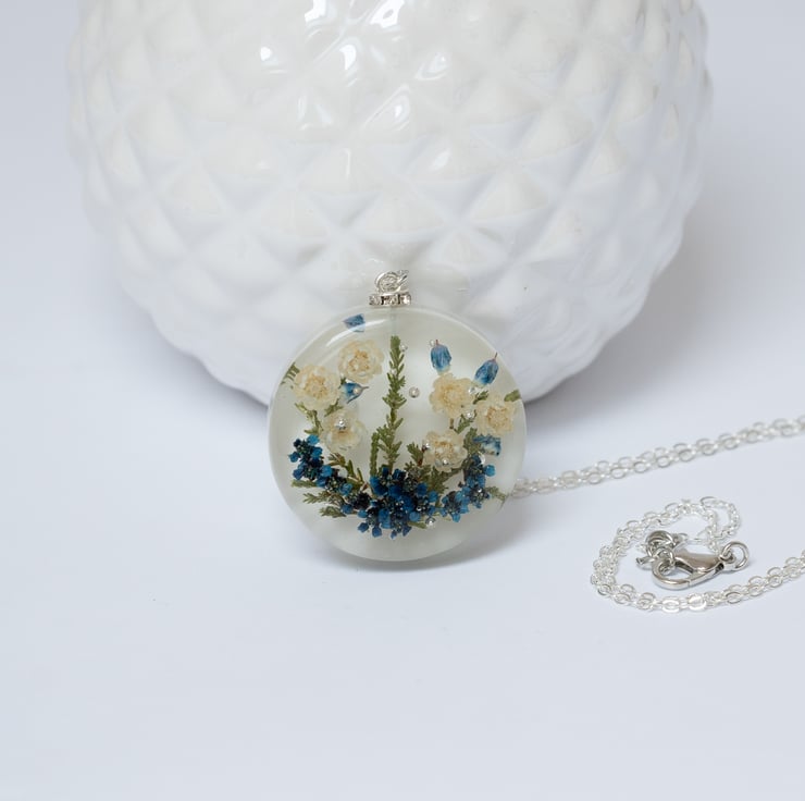 Pressed Flower Necklace – Unique Birthday Gift for Her – Resin Terrarium Pendant