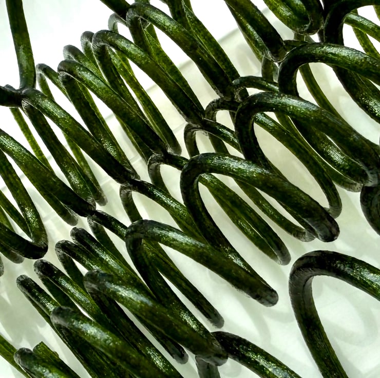 Handmade in the UK using 100% Bullseye glass using the Vitrigraph process to create a collection of coiled strings of glass.