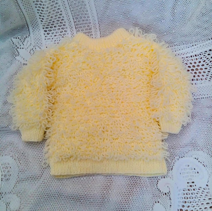 Hand Knitted Girls Looped Jumper, Birthday Gift, Knitted Childrens Clothes, Girls Gifts, New Baby Gift, Baby Shower Gift, Christening Gift