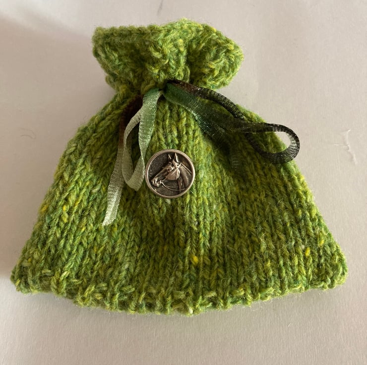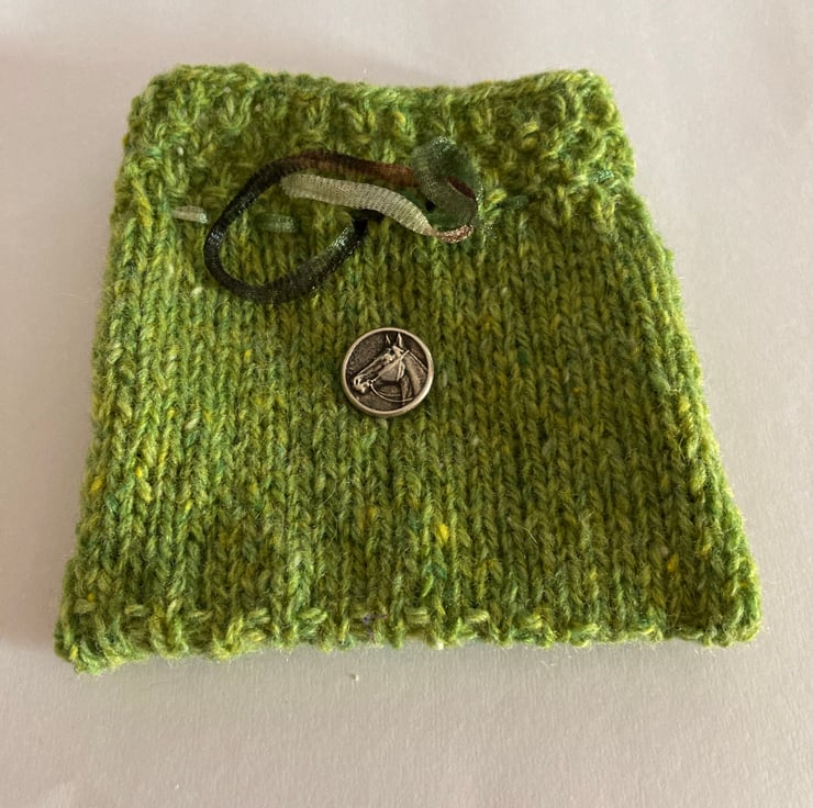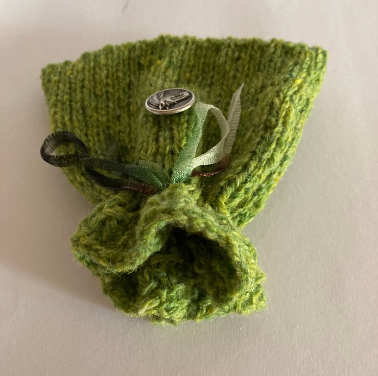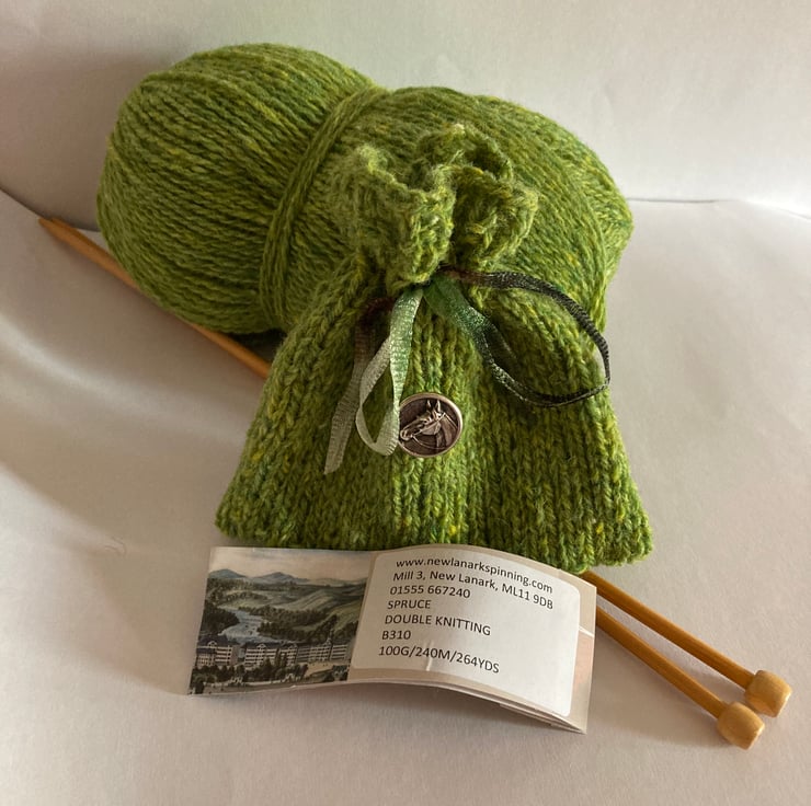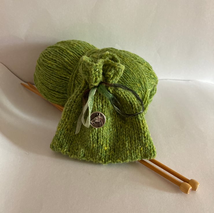 This hand knitted gift bag is 100% pure new double knitting wool in a spruce green.