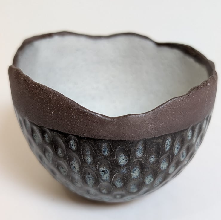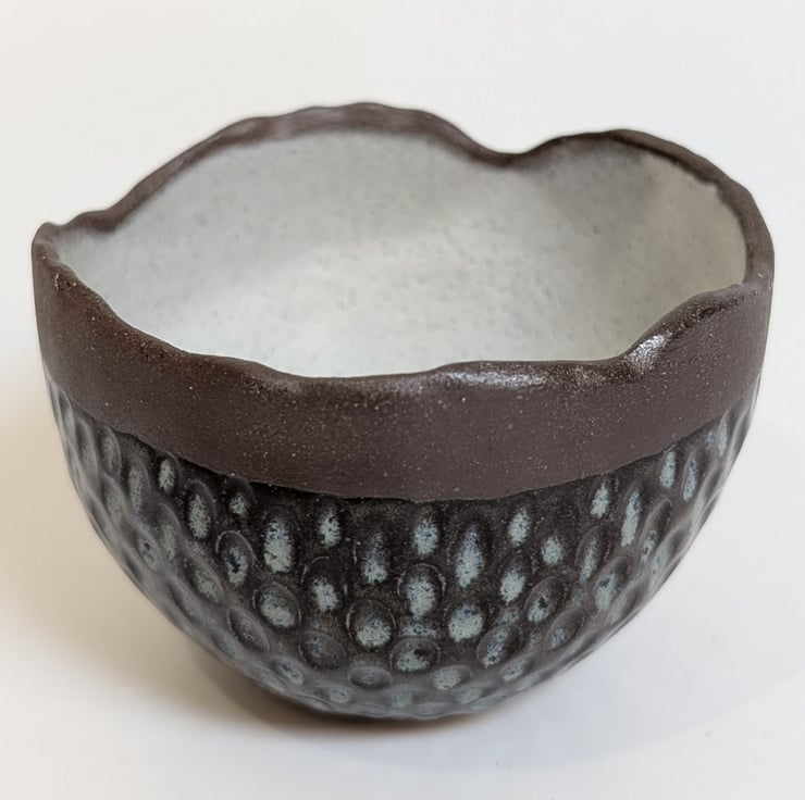 Small bowl with fish scale design and 'wobbly' shaped top.