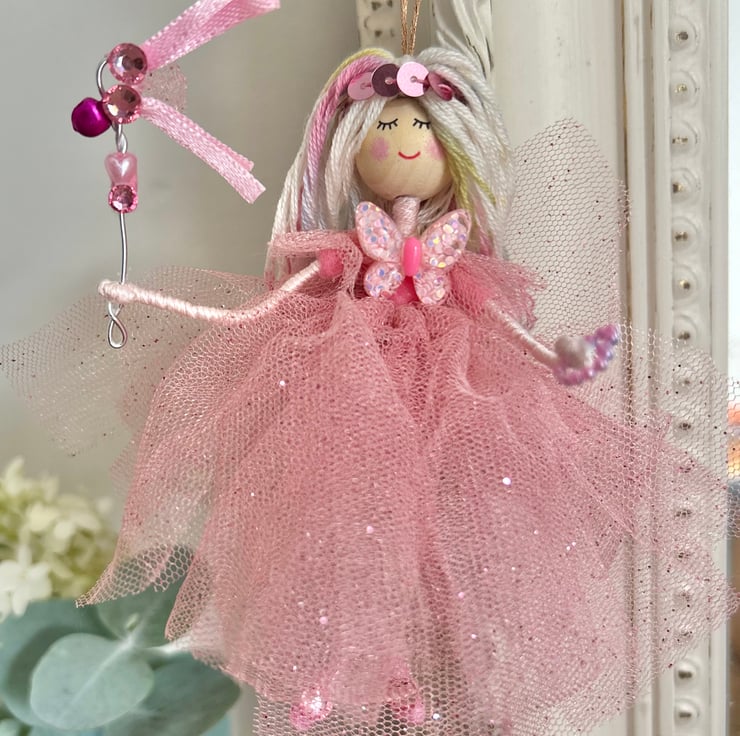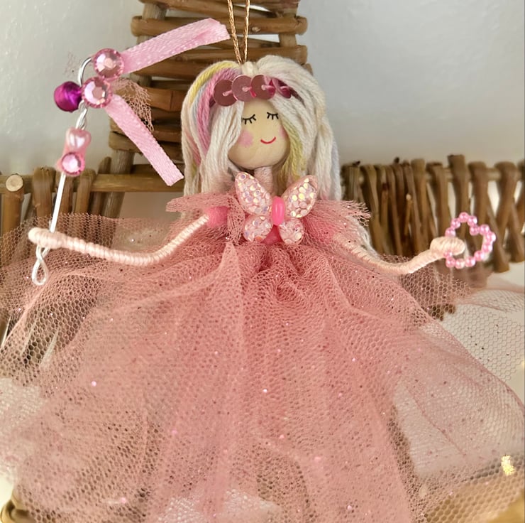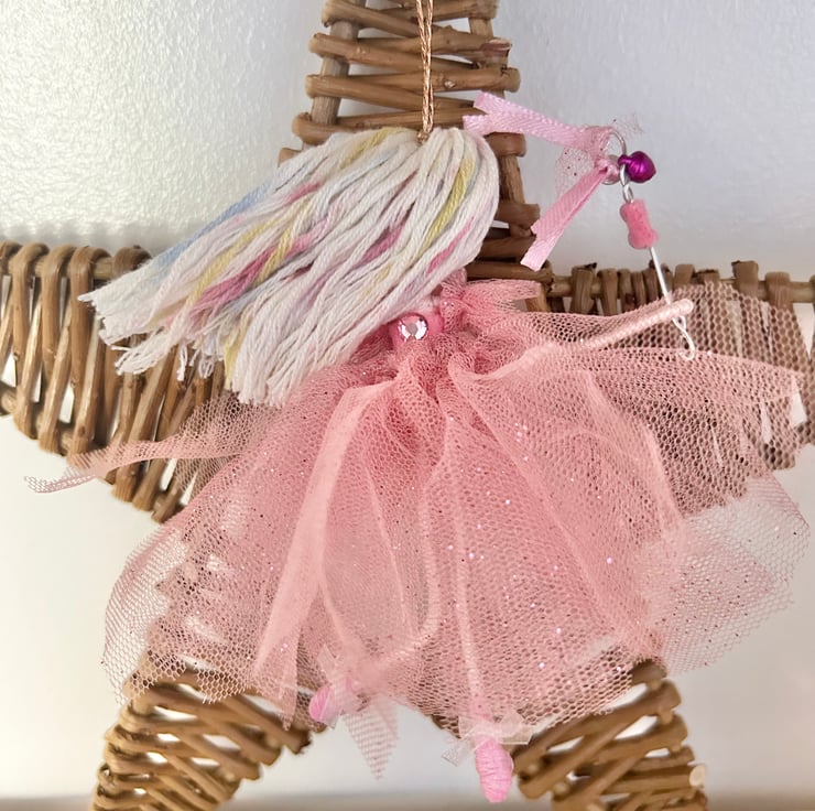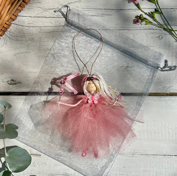 Hand made and unique ballerina decoration with tulle skirt and butterfly detail.