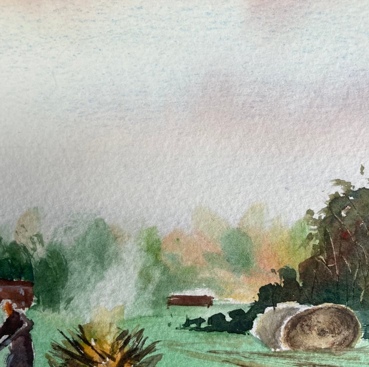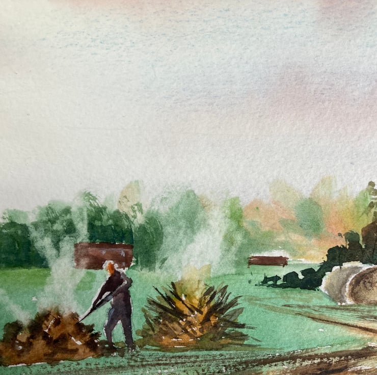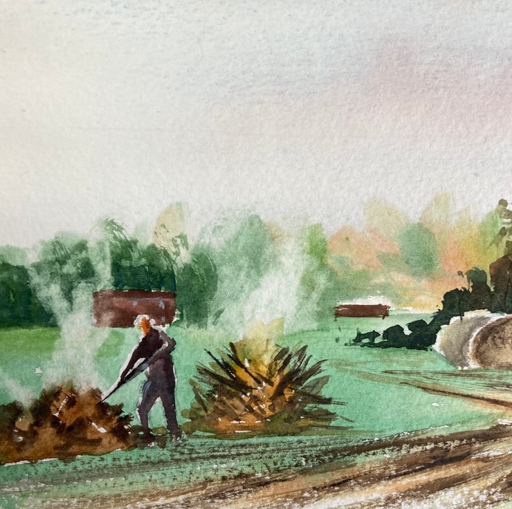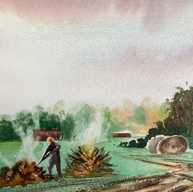 You could feel winter arriving, very cold and damp. The figure and bonfire was added to add some ‘life’ to a barren scene. The sky had a beautiful winter feel to it. Permanent rose was added to warm it a touch.