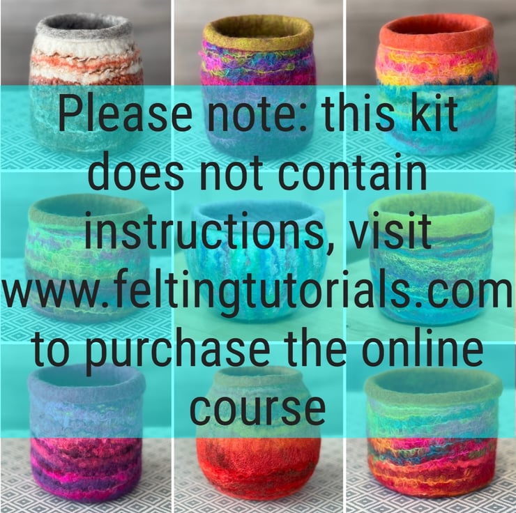 This wet felting materials kit is designed to accompany my online Felt Bowl on a Ball course at www.feltingtutorials.com (hence it does not include separate instructions because they are included in the course). You will find similar instructions on wet felting a bowl in either of my books, 'Wet Felting' or '3D Wet Felting'. You can also use the pack to make any felting project using 100g or less of fibre.