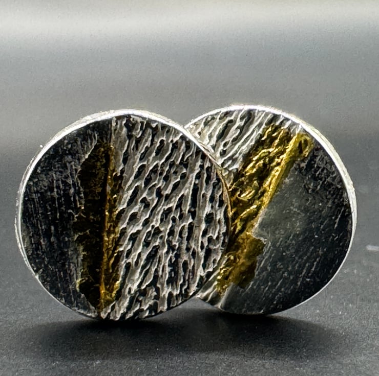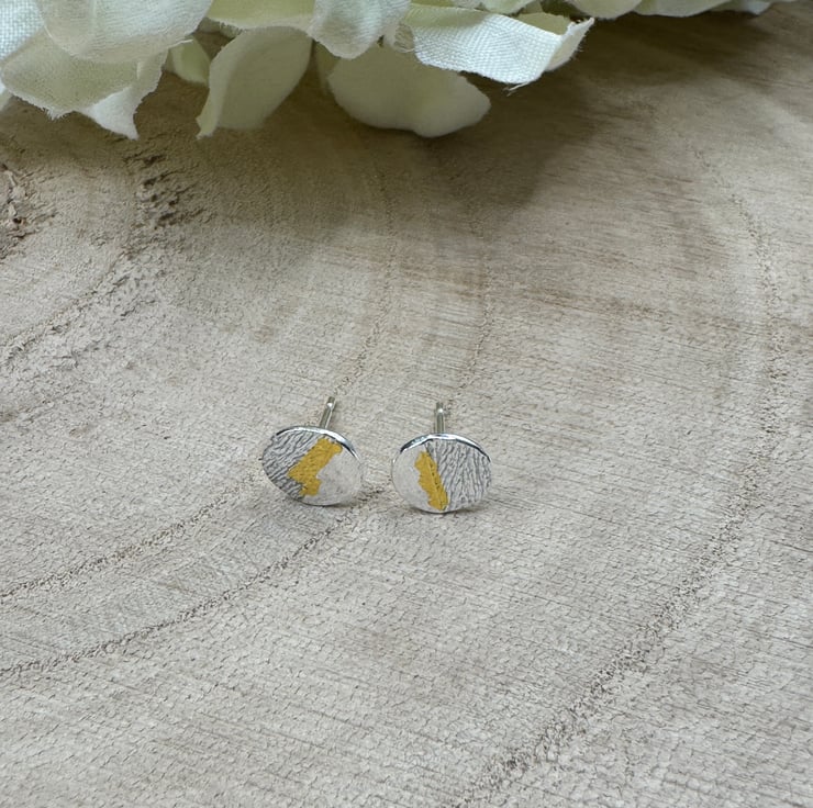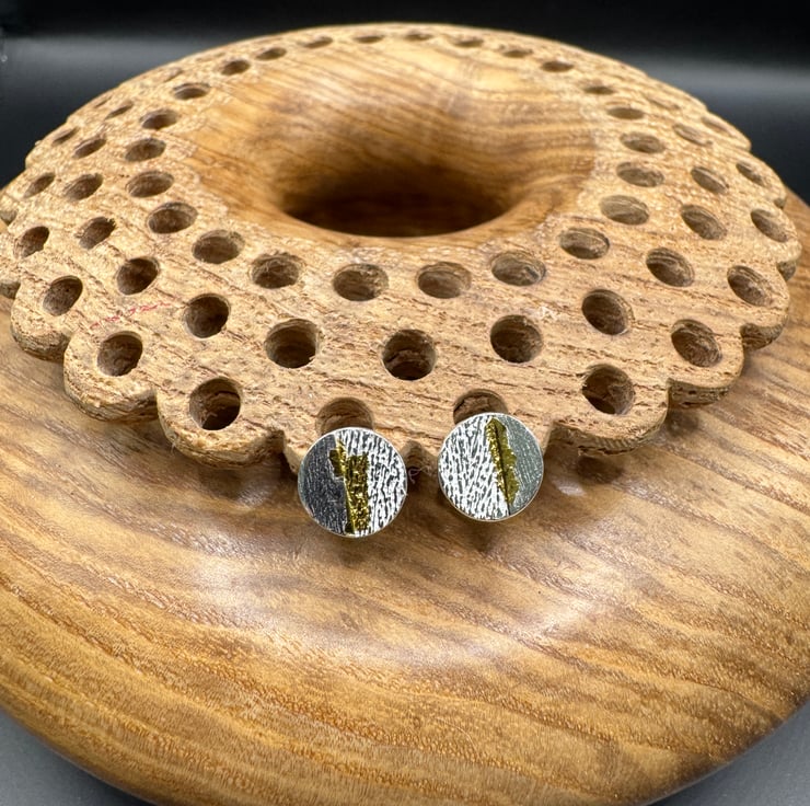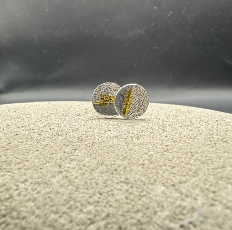 These beautiful round stud earrings are handmade in fine silver with a flash of 24ct gold fused.