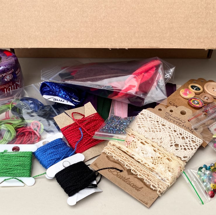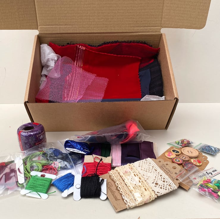 Each box also contains a little bag of scraps, these are irregular left overs of fabric that I would normally throw away but may be useful for patchwork projects and are mainly felt, hand dyed pieces and left overs from cutting the fabrics.
