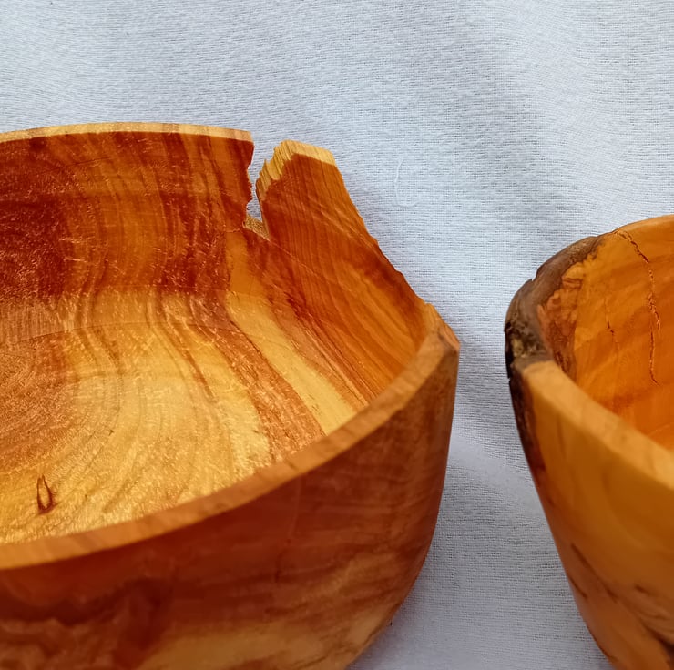 With this philosophy I have created these bowls using interesting timber that has certain cracks, splits and other unique imperfections. They are finished with linseed oil to show off the grain shape and colour.
