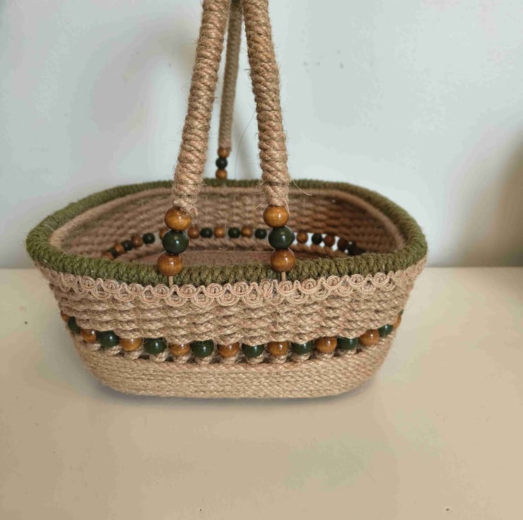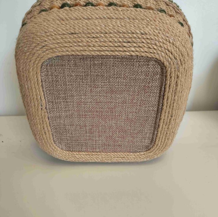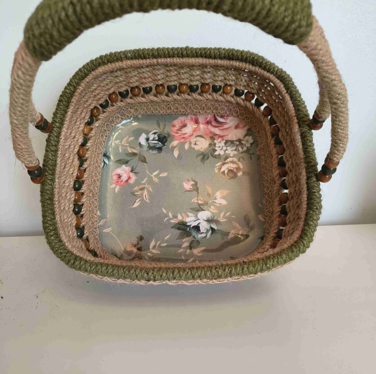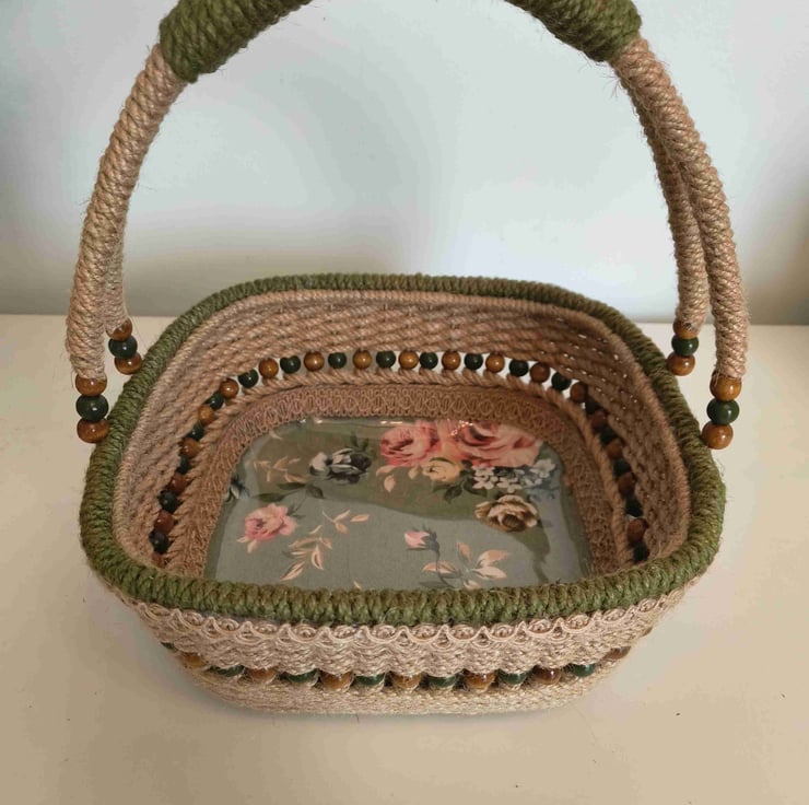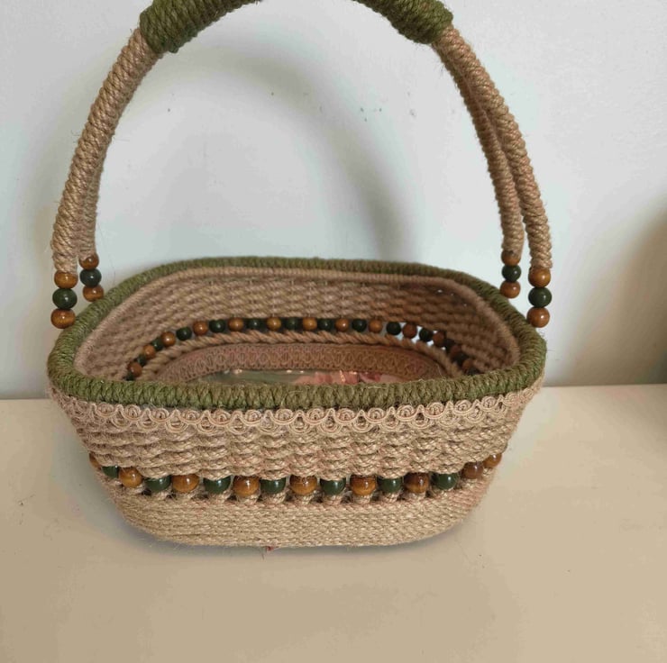 a beautiful square basket handwoven from hemp rope