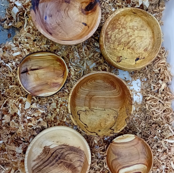 Wood turned bowls focusing on beautiful natural grains. Each timber is unique with linseed oil finish.