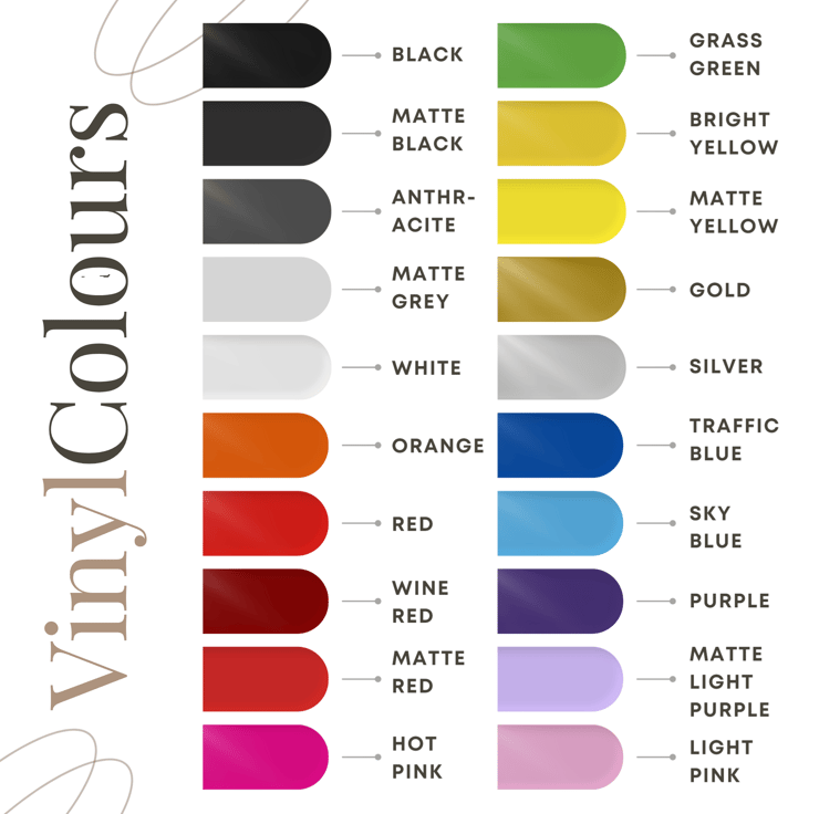 - Colour Options: Multiple vinyl and acrylic combinations available