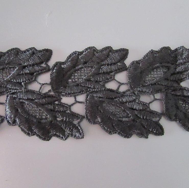 BEAUTIFUL EMBROIDERED BLACK VENISE LACE TRIM