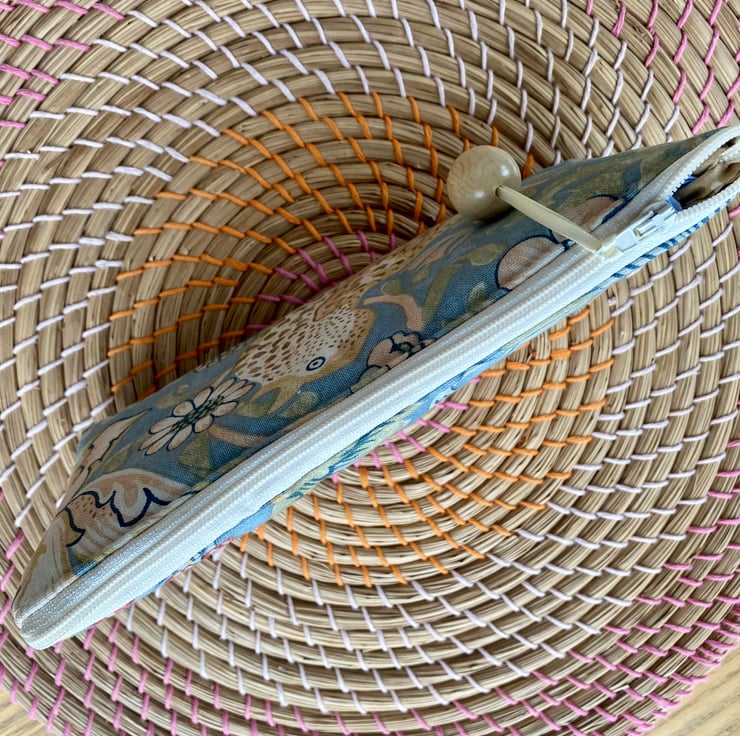Handmade zipped pencil case or purse in William Morris Strawberry Thief fabric