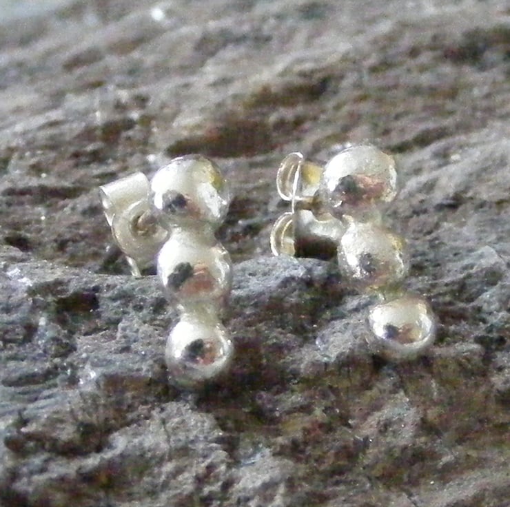 Modern and understated sterling silver earrings, created from tiny nuggets of sterling silver casting grain. Created in my home studio in Hampshire.