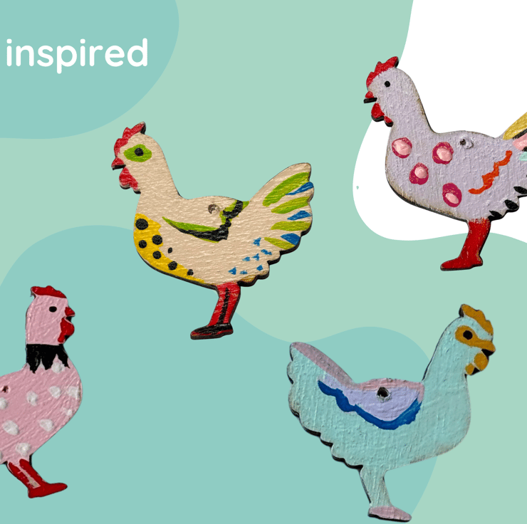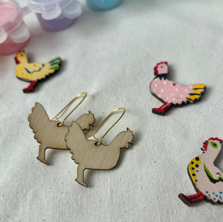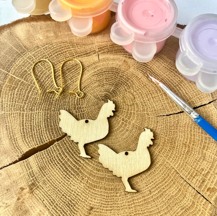 Pair of wooden earring blanks in hen shape - each blank is 25x30mm, laser cut on 0.2 mm plywood