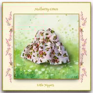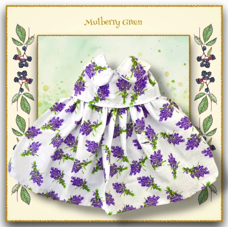 A beautiful little dress in a lavender print, to fit the Mulberry Green characters. The dress is made from best quality cotton and has a Peter Pan collar and a lined bodice.