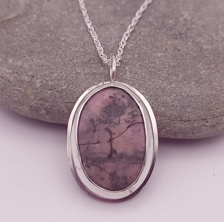 The stone is set in Sterling silver with the bezel forming an edge to frame the piece.