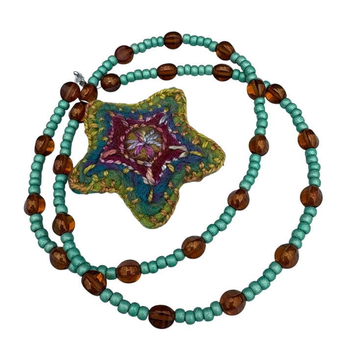 Bead and Felted Charm BoHo style Necklace - Striped Star