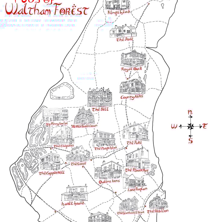 Tolkien Style Map of the Pubs of Waltham Forest