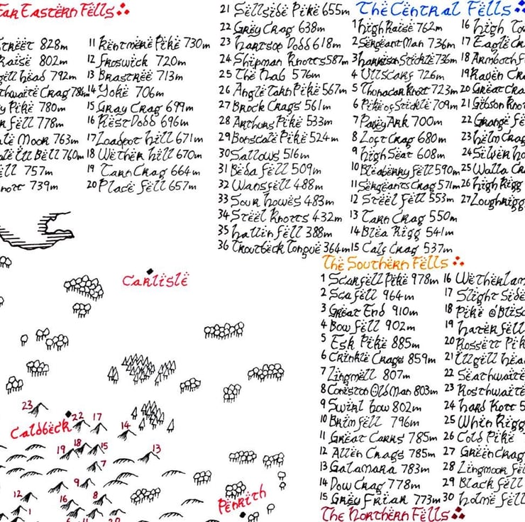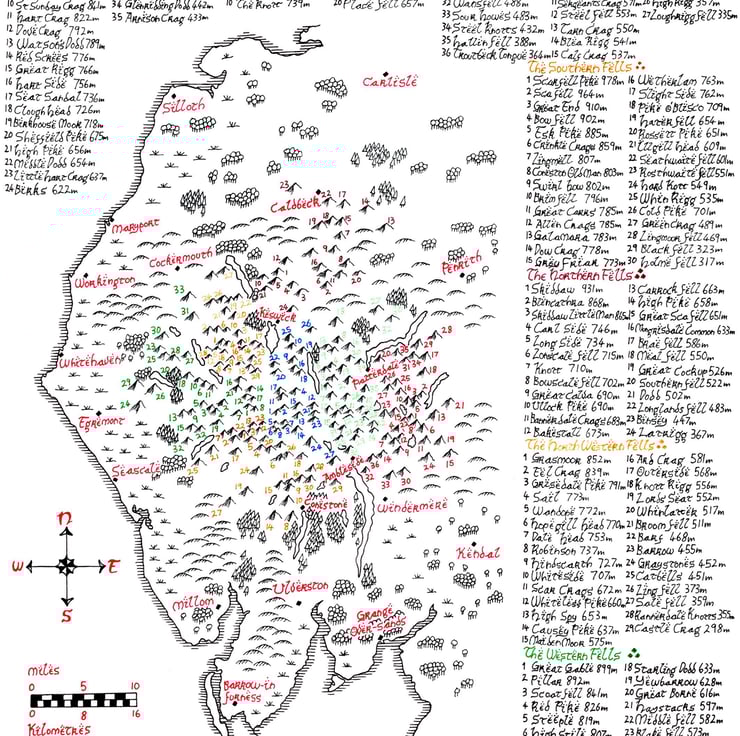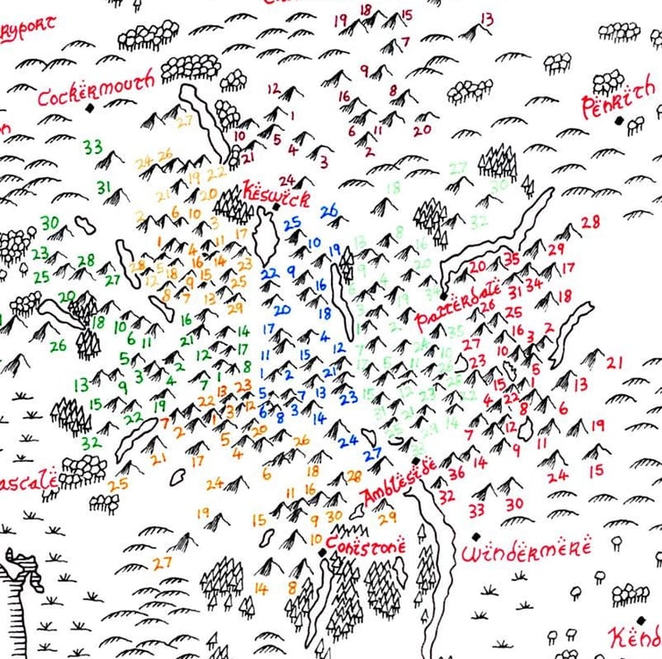 Tolkien Style Map of Lake District Wainwright Fells