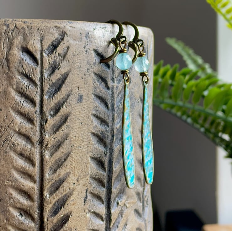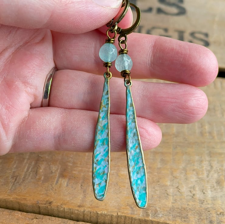 Finished with lead and nickel free antiqued brass leverback earwires, these earrings are lightweight and comfortable to wear. They measure approximately 5 1/2 cm from the bottom of the earwire and 7 cm in total length.