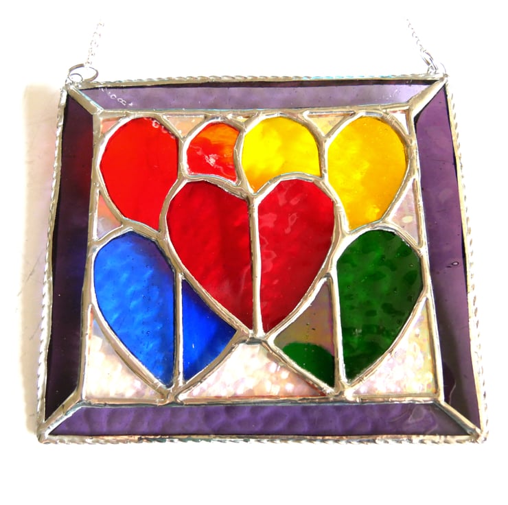This is a stained glass suncatcher made using the Tiffany copper foil technique.