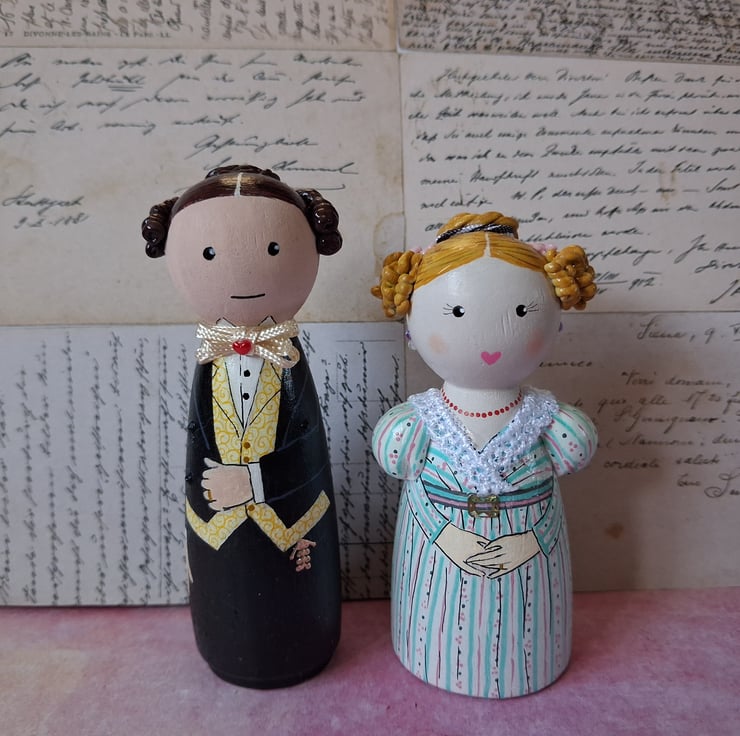 Inspired by the popular Gentleman Jack TV series, two peg doll set of Anne Lister and Anne Walker.
