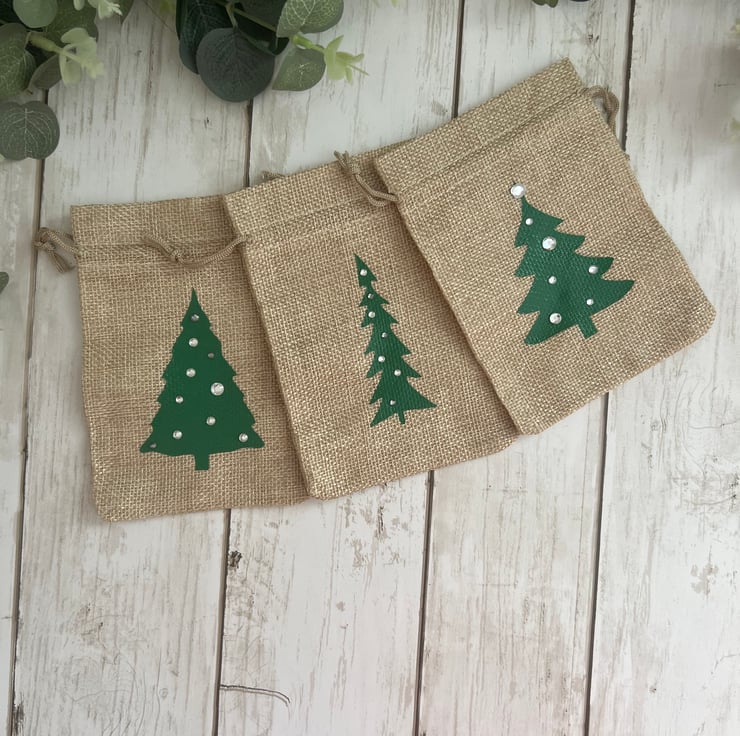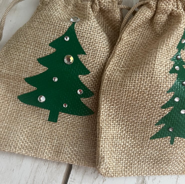 Hessian fabric with draw string ties, these little gift bags are great for Christmas wrapping.