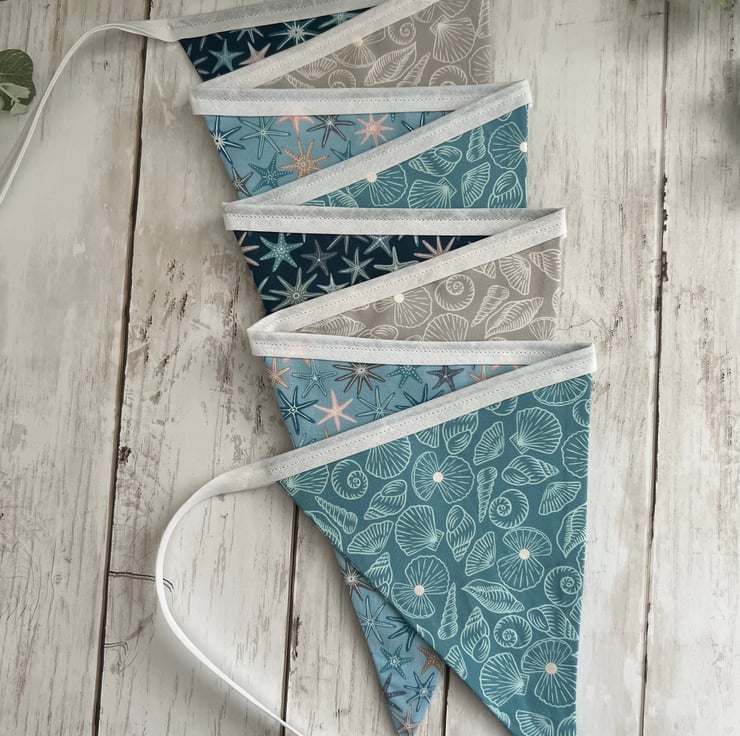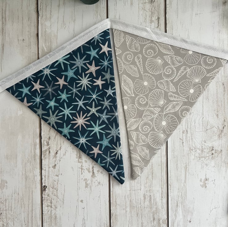 Handmade Fabric Bunting 8 Flags in Coastal Shells & Starfish Design