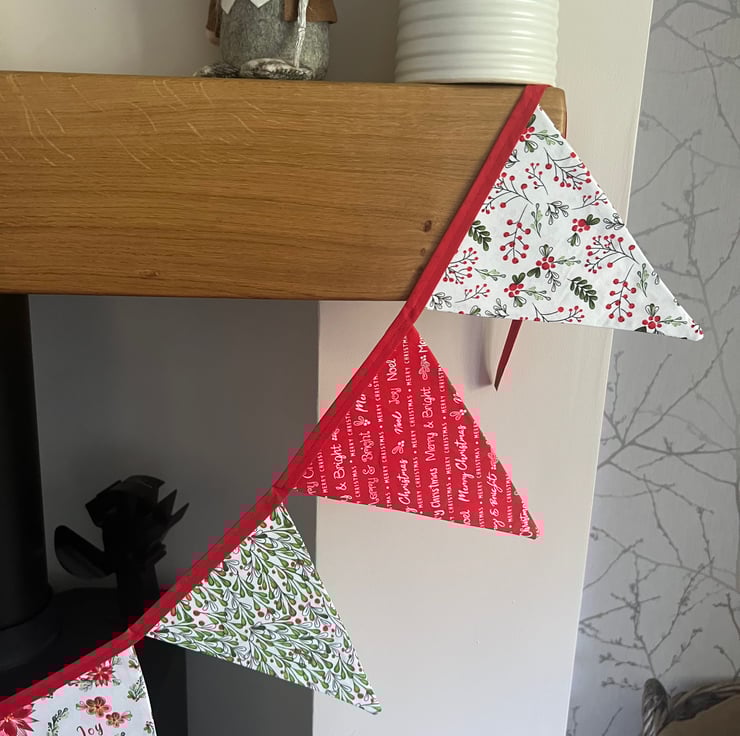 Handmade fabric bunting consisting of 10 flags.
