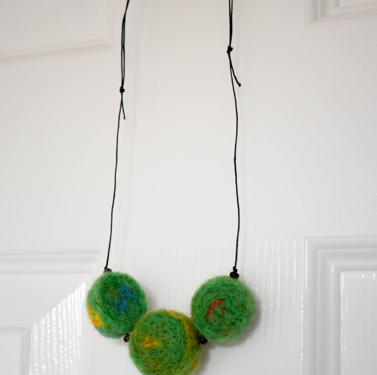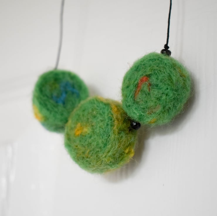 Handmade Felted Bead Necklace – "Woodland Moss"