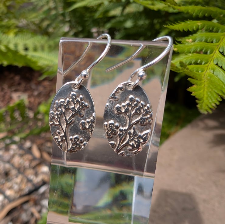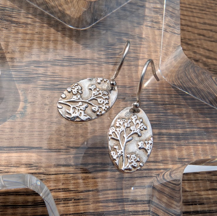 These earrings are textured with my "Summer Meadow Design". The perfect gift for plant lovers and gardeners.