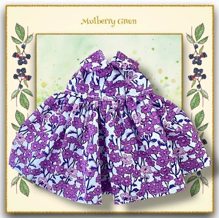 A beautiful dress in Liberty Flower Show fabric, to fit the Mulberry Green characters. The dress is made from best quality designer cotton and has a Peter Pan collar and a lined bodice.