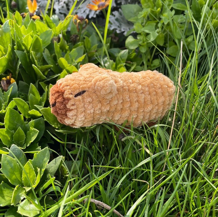 Sleepy Plushie Capybara: Soft Chenille Yarn