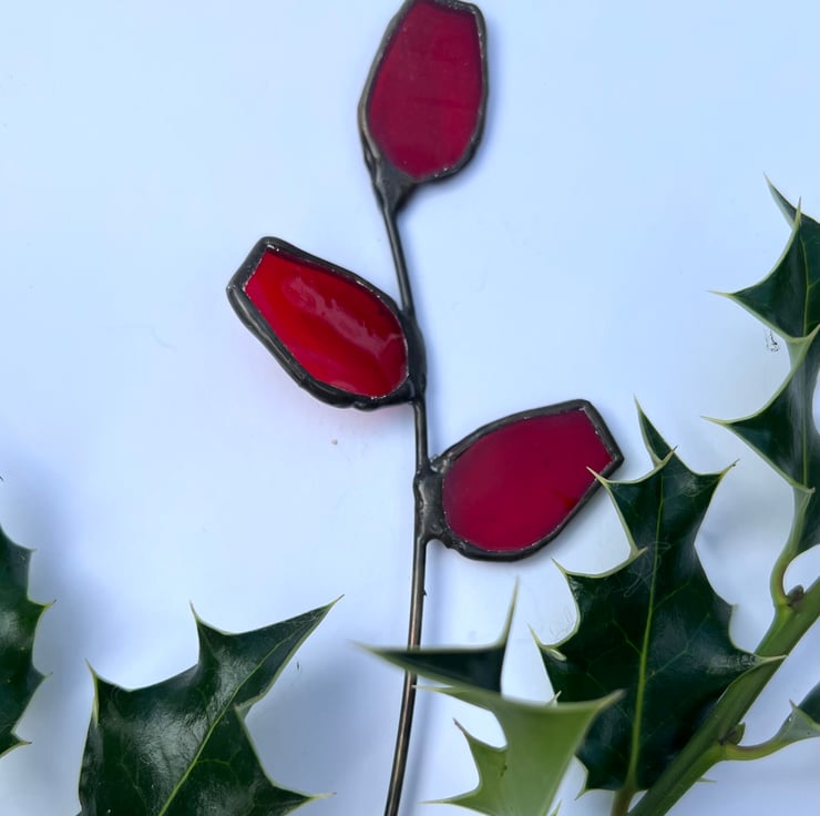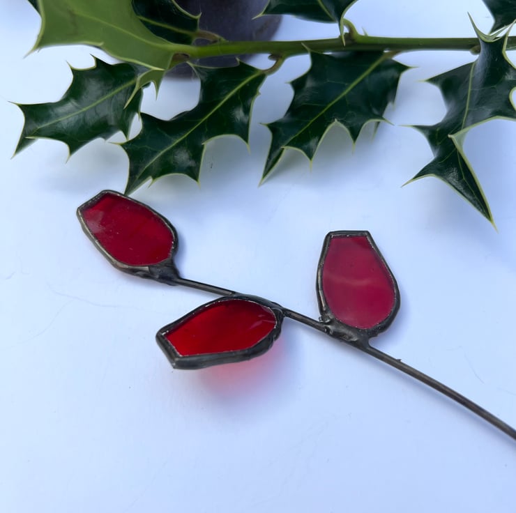 Winter decor inspired by nature, these stained glass rose hips add colour to your Christmas displays year after year.