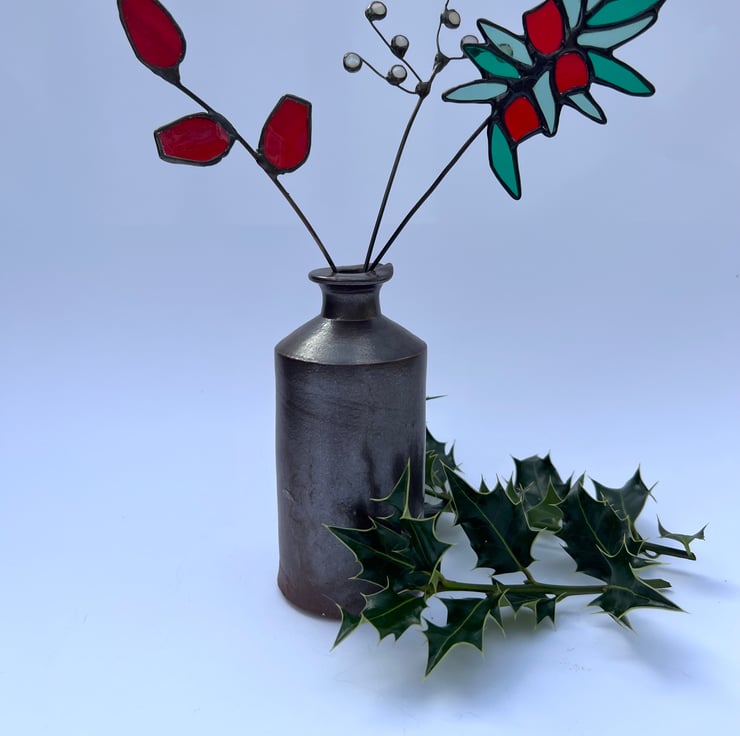 To display, I like to place glass stems in a heavy narrow vase or stoneware jar. Would work wonderfully to add colour to a dried flower arrangement.