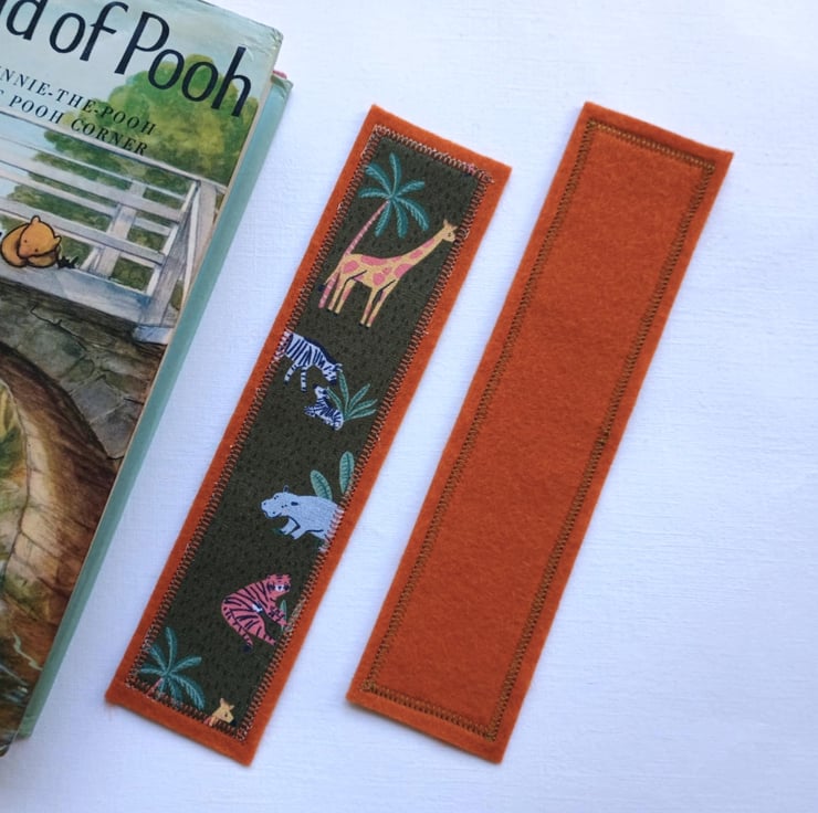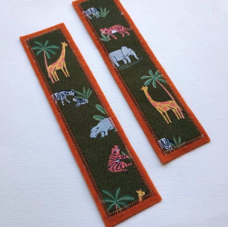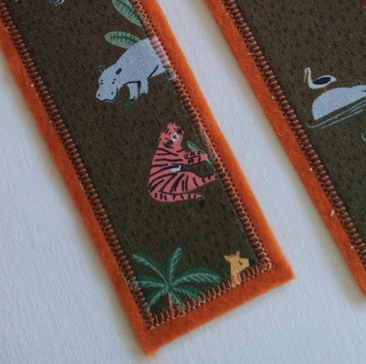 Lions and Tigers and Bears - oh my..... Well, not bears, but lots of other wild animals on my mini-safari themed felt bookmarks. Handmade from top quality quilting cottons and pure wool felt, my bookmarks are perfect as a treat for an avid bookworm, and ideal party favours and stocking fillers too. I have more more bookmark designs in my shop - all made using my fabric scraps as part of my zero-waste, sustainable approach to crafting.