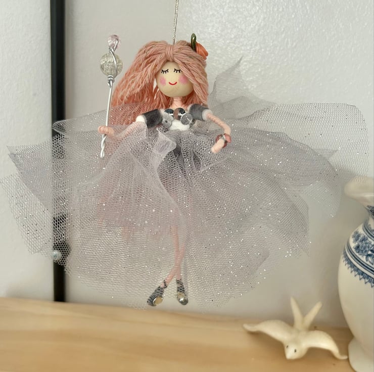 Hand made and unique ballerina decoration with tulle skirt and butterfly detail.