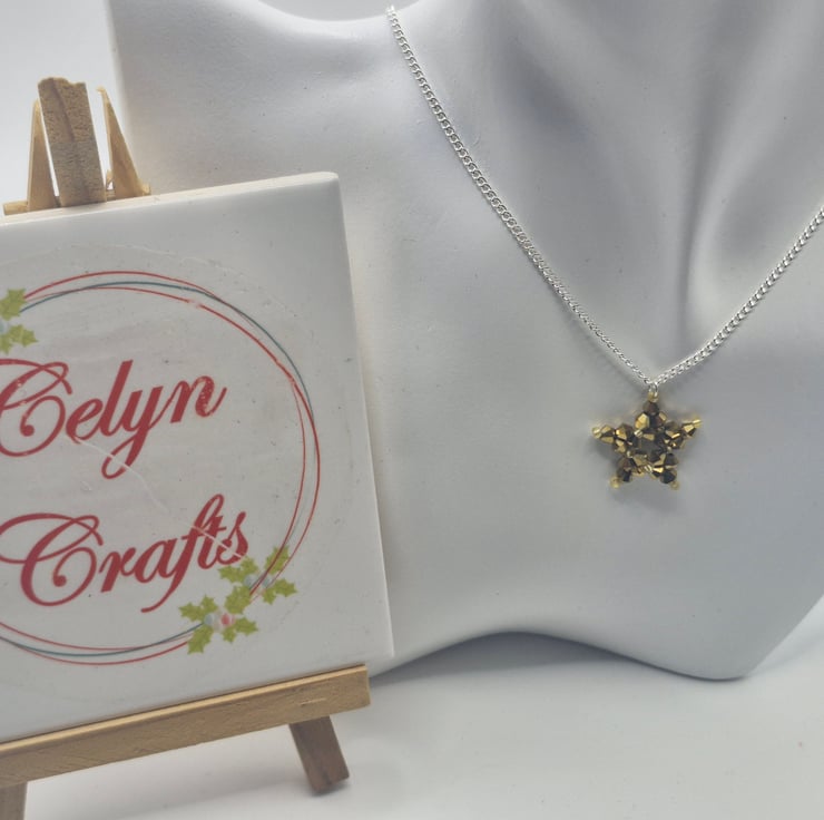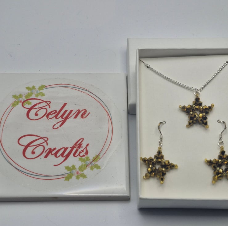 This dazzling Starlight Sparkle Set features a handcrafted star necklace and matching earrings, made with shimmering gold bicone crystal glass beads and gold Toho seed beads that catch the light from every angle. Elegant yet playful, this set brings celestial vibes to your jewellery collection—whether you're dancing under the stars or lighting up a daytime look.
