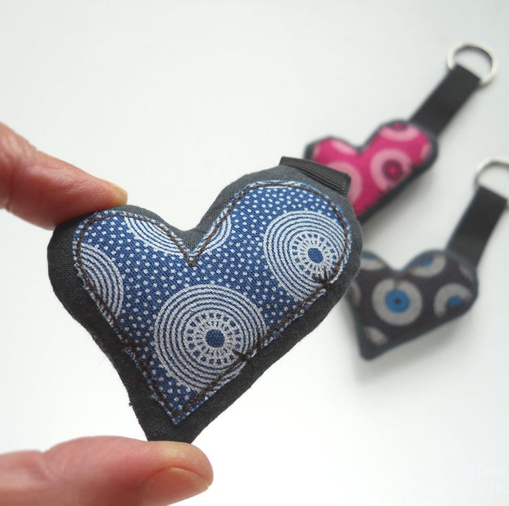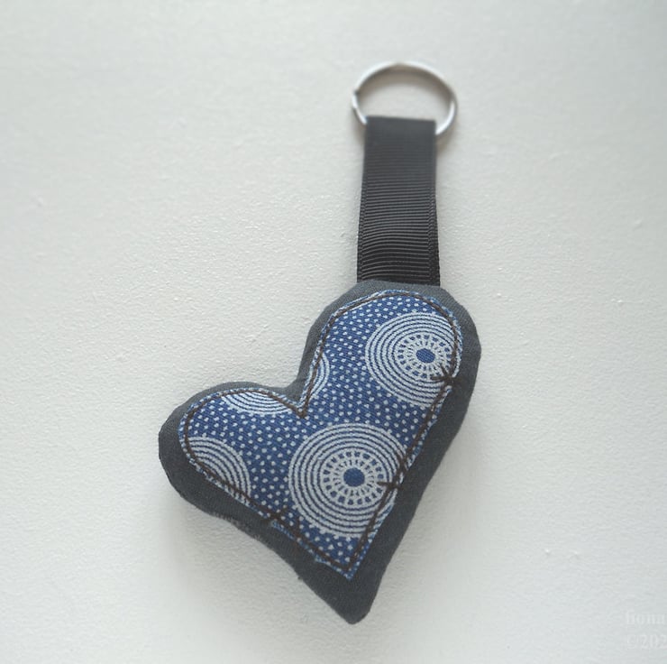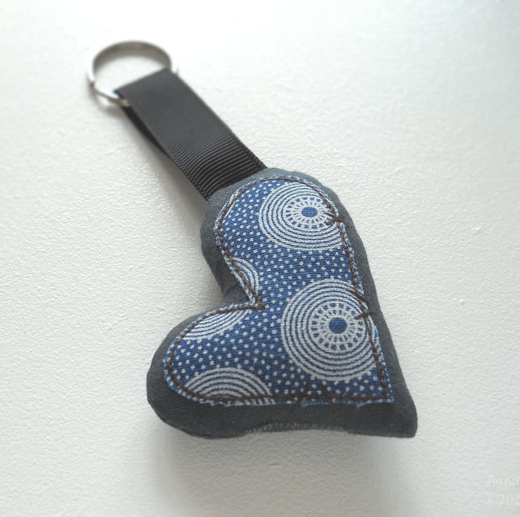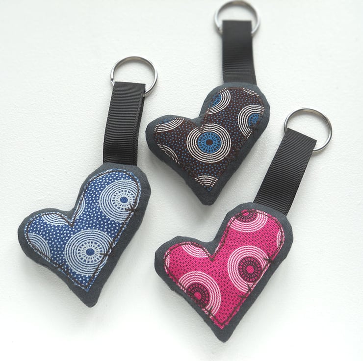 applique and free motion embroidered zombie heart keyring - south african ethnic print, only 1 available - the heart in the photo is the one you will receive.