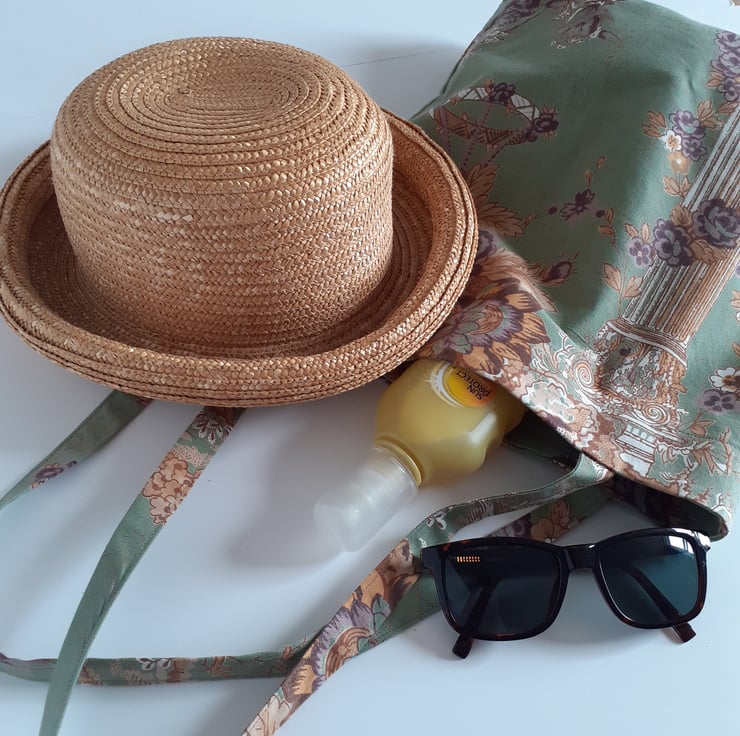 I have used it to make a lightweight simple but sturdy unlined tote or shopping bag which could also be useful as a book bag. It has a small inside pocket for your phone and keys, and will fold up into its own little pouch, ready for all those unexpected buys when you want to avoid plastic bags. This would make a great present for a lover of classics, antiquities or cherubs!