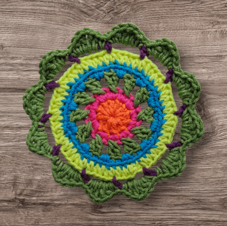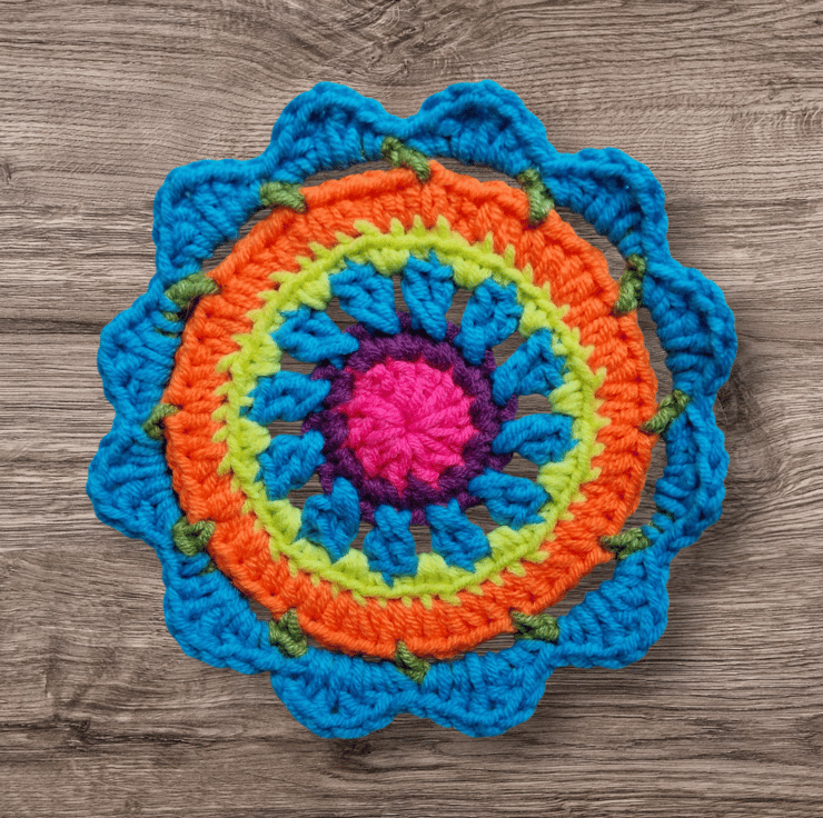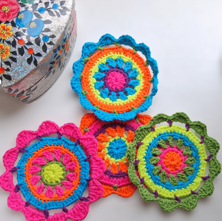 ultra bright neon crochet mandala flower coasters